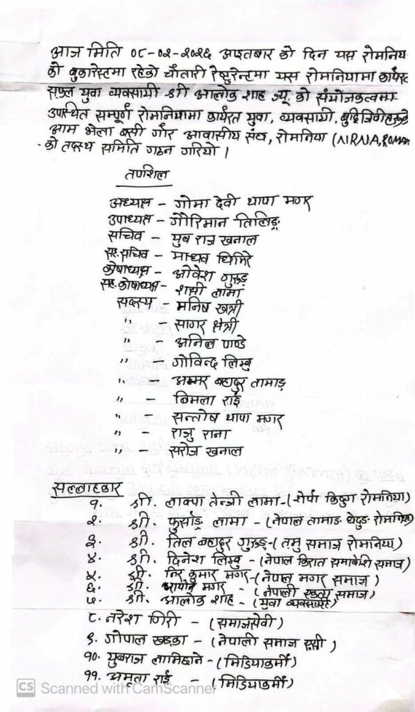 मिति २०८२ साल माघ २५ गते आइतबार बुखारेस्टमा आयोजित भेलाबाट प्रवासी युवा व्यवसायी तथा सामाजिक अभियानलाई संस्थागत रूपमा अघि बढाउने उद्देश्यसहित तदर्थ समिति गठन गरिएको हो । उक्त भेलामा रोमेनियामा रहेका युवा व्यवसायी, बुद्धिजीवी, सामाजिक अभियन्ता तथा विभिन्न संघ–संस्थाका प्रतिनिधिहरूको उल्लेख्य उपस्थिति रहेको थियो ।