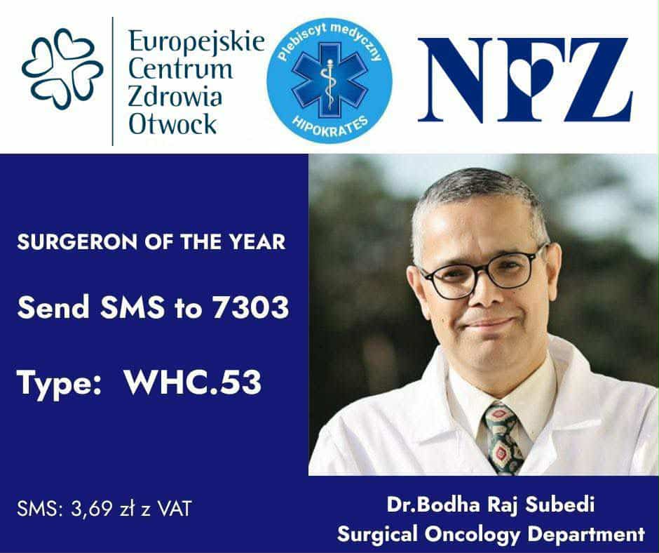 पोल्यान्डको सबैभन्दा ठूलो चिकित्सा क्षेत्रको HIPOKRATES 2025 को लागि “SURGEON OF THE YEAR” डा• बोधराज सुवेदी मनोनयनमा परेका छन् ।
