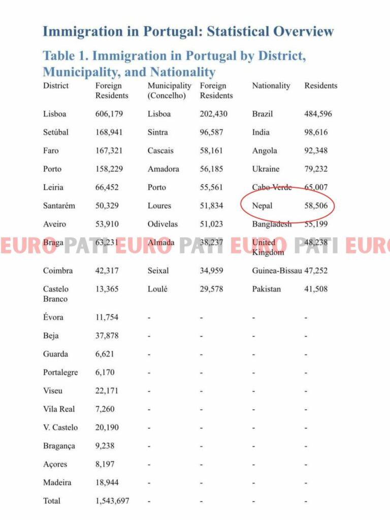 पोर्चुगलमा आप्रवासीको संख्या १५ लाख नाघ्यो, नेपालीको संख्या ५८ हजार ५ सय ६ जना
