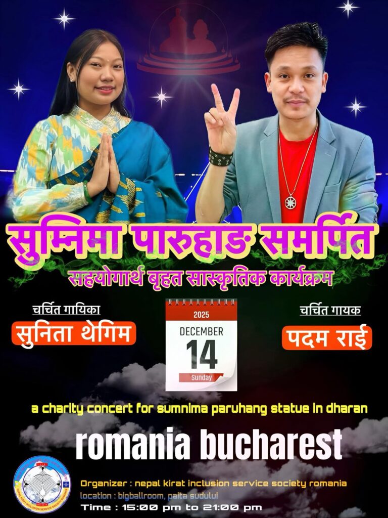 रोमानिया —  किरातिहरुको महान चाड उधौली साकेला तथा चासोक तङ्नामको पावन अवसरमा रोमानियामा एक बृहत सांस्कृतिक कार्यक्रम तथा च्यारिटी कन्सर्ट आयोजना हुने भएको छ । नेपाल किरात समाबेशि सेवा समाज, रोमानियाको आयोजनामा हुन लागेको उक्त कार्यक्रम आगामी मिति २०२५ डिसेम्बर १४ तारिख आइतबारका दिन सम्पन्न हुनेछ ।