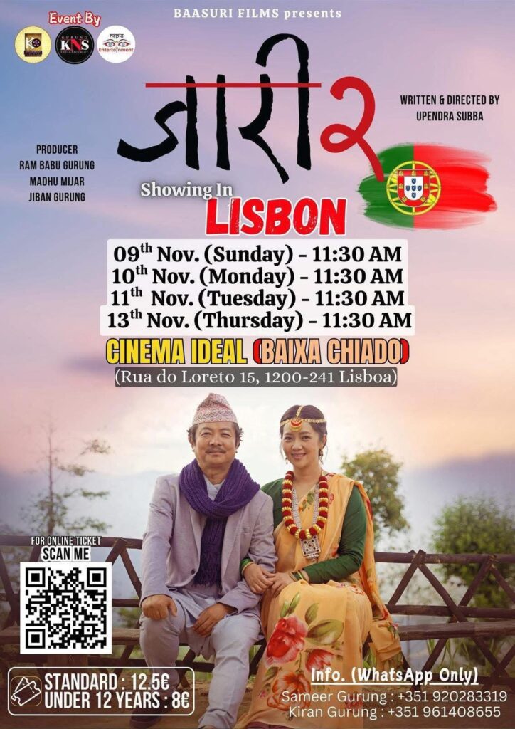 पोर्चुगल (लिस्बन) — गत वर्ष बक्स अफिसमा कीर्तिमानी सफलता हासिल गरेको नेपाली चलचित्र ‘जारी’को दोस्रो श्रृंखला ‘जारी २’ युरोपेली राष्ट्र पोर्चुगलमा प्रदर्शन हुने भएको छ । पोर्चुगलमा बसोबास गर्ने नेपाली दर्शकहरूका लागि यो चलचित्र आगामी नोभेम्बर ९ देखि प्रदर्शनमा आउन लागेको हो ।