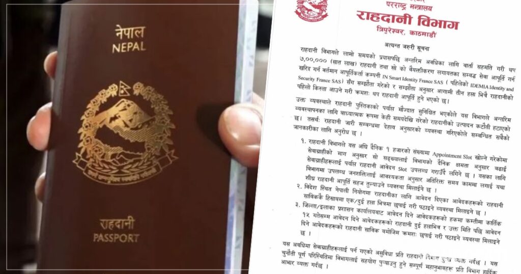 विभागले राहदानी छपाइ र वितरणका लागि नयाँ समय तालिका समेत सार्वजनिक गरेको छ :