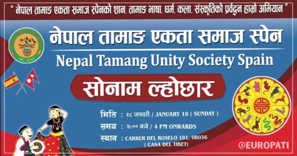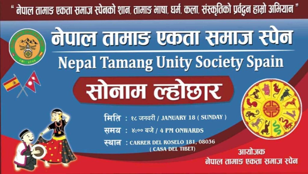 बार्सिलोना (स्पेन) — स्पेनको बार्सिलोनामा तामाङ समुदायको महान् तथा ऐतिहासिक सांस्कृतिक पर्व सोनाम ल्होछार यस वर्ष निकै भव्यताका साथ मनाइने भएको छ । तामाङ समुदायको मन्जुश्री २८६२ औं सोनाम ल्होछार अर्थात् ‘ता ल्हो’ (घोडा वर्ग) को पावन अवसर पारेर नेपाल तामाङ एकता समाज स्पेनले यही आउँदो जनवरी १८ तारिखका दिन बार्सिलोना स्थित ‘कासा दे टिबेट’ मा बृहत सांस्कृतिक कार्यक्रमको आयोजना गर्न लागेको हो ।