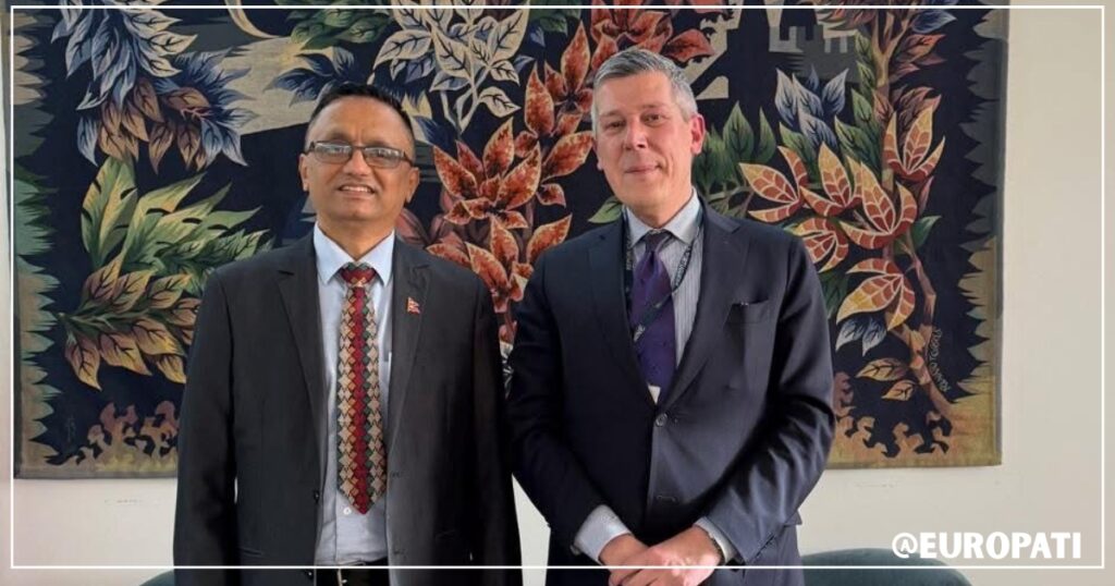 लिस्बन (पोर्चुगल) — पोर्चुगलका लागि नेपाली राजदूत महामहिम प्रकाशमणि पौडेलले पोर्चुगलको परराष्ट्र मन्त्रालयका उच्च अधिकारीसँग महत्त्वपूर्ण शिष्टाचार भेटवार्ता गर्नुभएको छ । दुई देशबीचको कूटनीतिक सम्बन्ध सुदृढ बनाउने उद्देश्यले आयोजित यो भेटघाट डिसेम्बर ०७, २०२६ का दिन लिस्बनस्थित परराष्ट्र मन्त्रालयमा सम्पन्न भएको हो ।