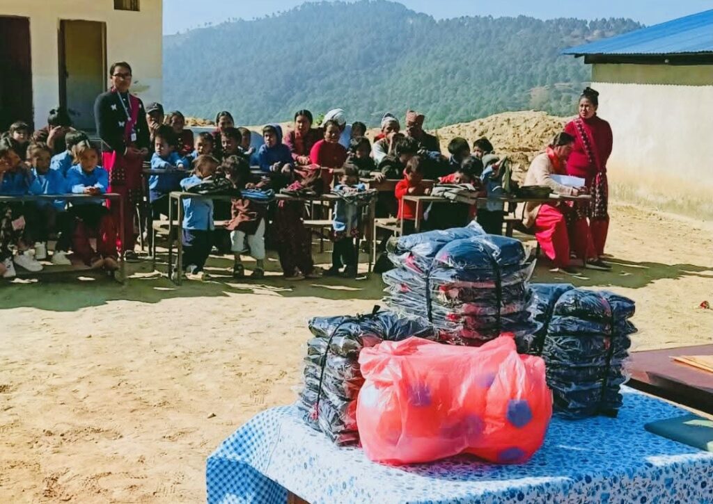 नुवाकोट (बेलकोटगढी) — नुवाकोट जिल्लाको बेलकोटगढी नगरपालिका वडा नं. ९, सिउरेनीस्थित श्री उज्वलतारा आधारभूत विद्यालयमा अध्ययनरत विद्यार्थीहरूलाई न्यानो कपडा (ट्रयाकसुट) तथा खेलकुद सामग्री वितरण गरिएको छ । ‘नेपाली जनप्रगतिशिल मञ्च प्रवासी टिम’ र विभिन्न देशमा रहेका समाजसेवी नेपालीहरूको संयुक्त पहलमा हिजो एक औपचारिक कार्यक्रमका बीच उक्त सामग्रीहरू हस्तान्तरण गरिएको हो ।