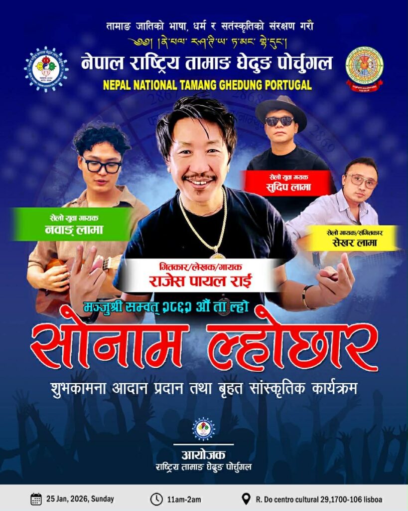लिस्बन (पोर्चुगल) — तामाङ समुदायको महान् तथा ऐतिहासिक सांस्कृतिक पर्व सोनाम ल्होछारको पावन अवसरमा नेपाल राष्ट्रिय तामाङ घेदुङ पोर्चुगलले लिस्बनमा ऐतिहासिक एवं बृहत सांस्कृतिक कार्यक्रमको आयोजना गर्ने भएको छ । प्रवासमा रहेर पनि आफ्नो मौलिक कला, संस्कृति र परम्परालाई जगेर्ना गर्ने उद्देश्यले घेदुङले शुभकामना आदानप्रदान सहितको विशेष सांगीतिक साँझको तयारी गरेको हो ।