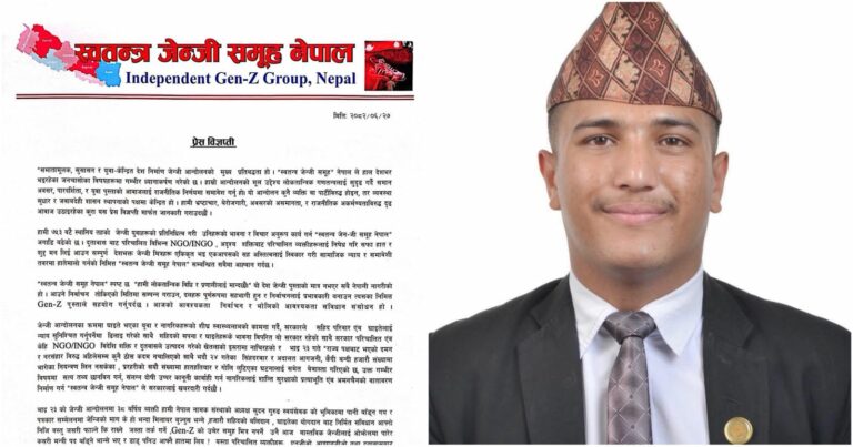 विदेशीबाट परिचालित समूह र सरकारविरुद्ध कात्तिक १५ गते आन्दोलन घोषणा, आन्दोलनका घाइते र वास्तविक आन्दोलनकारीलाई पाखा लगाइएको दाबी गरेको भन्दै स्वतन्त्र जेनजी समूहले आपत्ति जनाएको छ । स्वतन्त्र जेनजी समूहका संयोजक तथा आन्दोलनको घाइते समेत रहेका रुपेन्द्र दाहालले वक्तव्य जारी गर्दै वास्तविक जेनजीलाई ओझेलमा पारेर सुधन गुरुङजस्ता आइएनजिओ र विदेशी दूतावासबाट परिचालित अदृश्य शक्तिले राष्ट्रिय […]